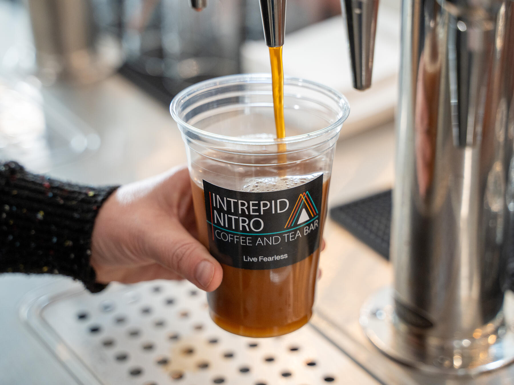At Intrepid, the focus is on the quality of the coffee and tea itself, and the nitro process that makes it taste the way it should. So we like to keep it simple and let the ingredients do the talking.That means we don’t offer flavored syrups like a traditional coffee shop. For those who like a little sweetness, we offer pure Vermont maple syrup and real honey.In a lot of ways, the experience here is like a craft brewery for coffee and tea. Rotating taps, small-batch ingredients, and people who genuinely enjoy the process as much as the final product. If you love good coffee, you’ll get it right away.
